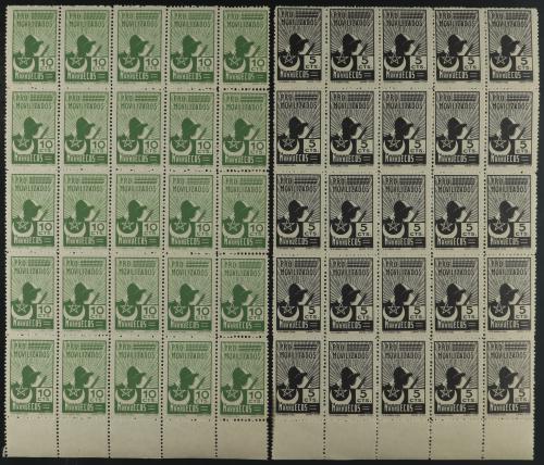 ESPAÑA GUERRA CIVIL. ZONA NACIONAL. ÁFRICA (Marruecos). 5 cts. negro y 10 cts. verde. 125 sellos de cada en bloques de 25. Allepuz ** 9 y 10.