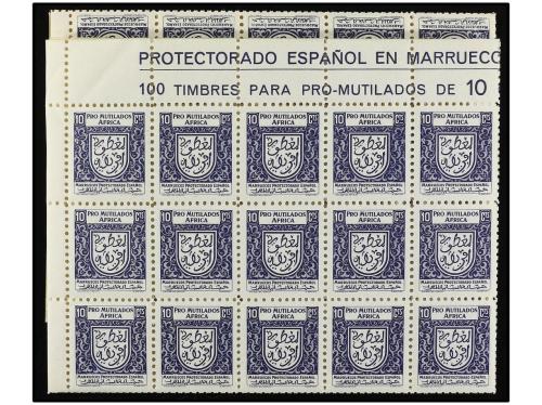 ESPAÑA GUERRA CIVIL. ZONA NACIONAL. ÁFRICA (Marruecos). 10 cts. azul. Hoja completa de 100 sellos. Allepuz ** 29.