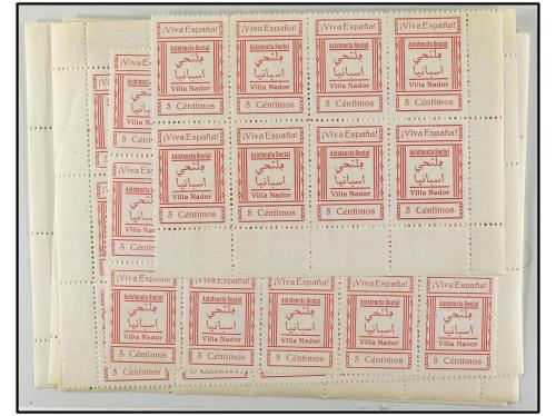 ESPAÑA GUERRA CIVIL. ZONA NACIONAL. ÁFRICA (Villa Nador). 5 cts. rosa. 123 sellos en hojas completas de 25 sellos o en bloques. Allepuz ** 1.