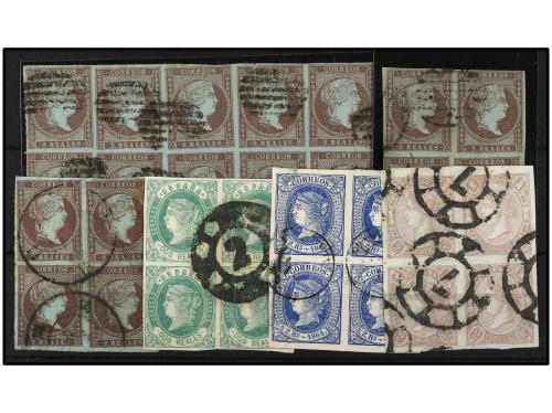 LOTES y COLECCIONES. 1856-65. FICHA con 5 bloques de cuatro y un bloque de diez.