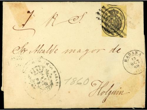 COLONIAS ESPAÑOLAS: CUBA. Ed. 6. Carta de LA HABANA a HOLGUIN el 13 Oct. 1860 y llegada el 22 en el reverso. RARA.