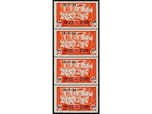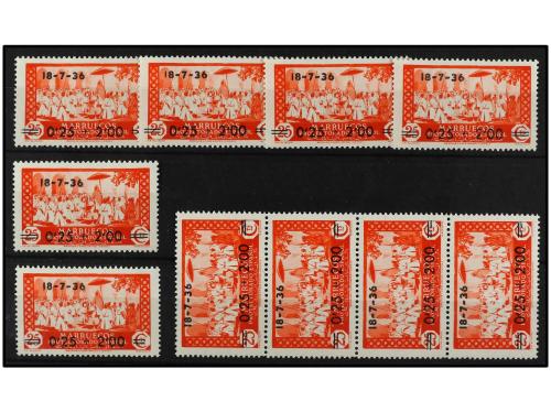 ** COLONIAS ESPAÑOLAS: MARRUECOS. Ed. 161 (10). 0,25 + 2,00 pts. sobre 25 cts. rojo. 10 sellos sueltos y en tira de cuatro. LUJO. Cat. 1.000€.