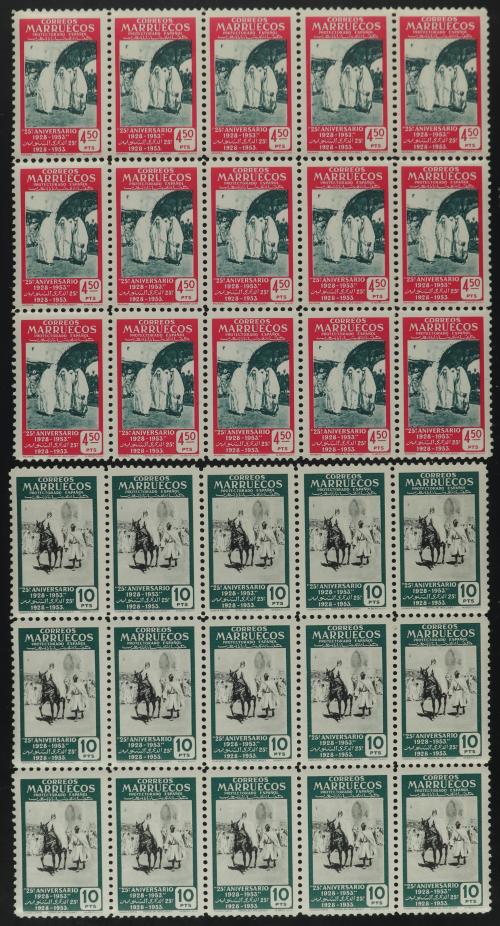 ** COLONIAS ESPAÑOLAS: MARRUECOS. Ed. 384/93 (18). 18 SERIES COMPLETAS. 10 valores en bloques. Cat. 810€.