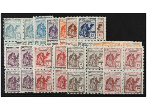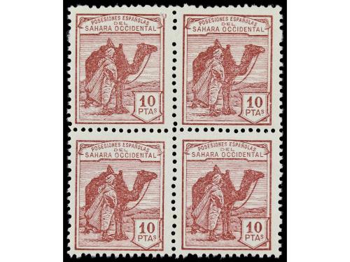** COLONIAS ESPAÑOLAS: SAHARA. Ed. 1/12 (4). SERIE COMPLETA, 12 valores sueltos o en bloques de cuatro. Numeraciones mezcladas. Un sello de 10 cts. punto de aguja. Cat. 2.200€.
