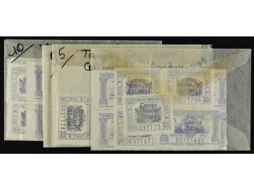 ** COLONIAS ESPAÑOLAS: TANGER. Ed. 149, 150 (30). 5 y 10 pts. 30 sellos sueltos y en bloques. Cat. 1.860€.