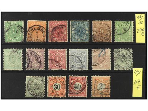 ° ALEMANIA ANTIGUOS ESTADOS. WURTEMBERG. 2 Fichas con 29 sellos. Alguno repetido. Calidades diversas. OCASION. A EXAMINAR. Yvert 1.079€.