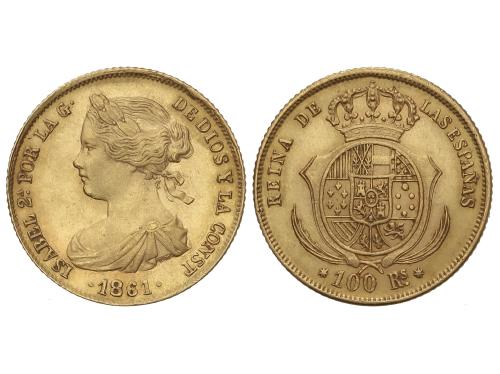 ISABEL II. 100 Reales. 1861. MADRID. 8,35 grs. AC-788. EBC-.