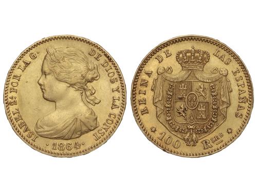 ISABEL II. 100 Reales. 1864. MADRID. 8,35 grs. AC-792. EBC-.