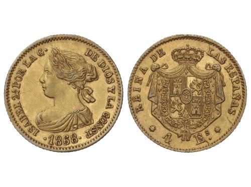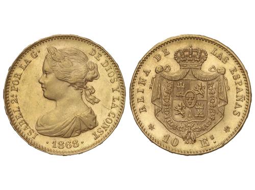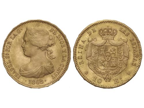 ISABEL II. 10 Escudos. 1868 (*18-68). MADRID. 8,37 grs. AC-815. EBC.