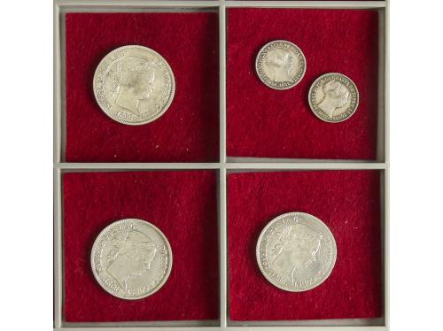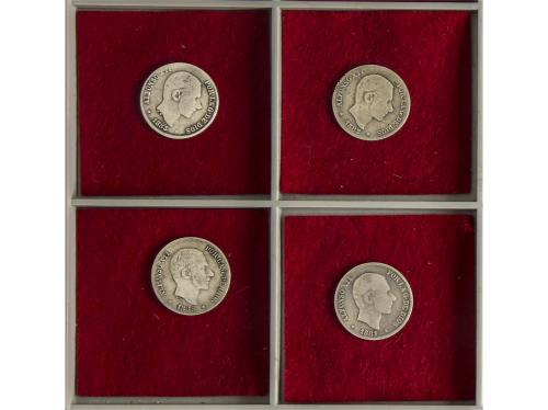 ALFONSO XII. Lote 4 monedas 10 Centavos de Peso. 1881, 1882/1, 1883 y 1885. MANILA. BC+ a MBC+.