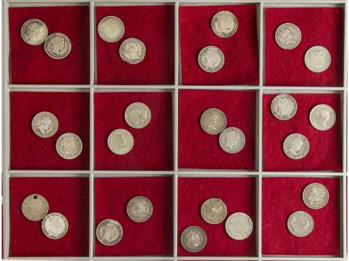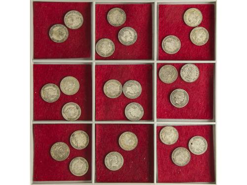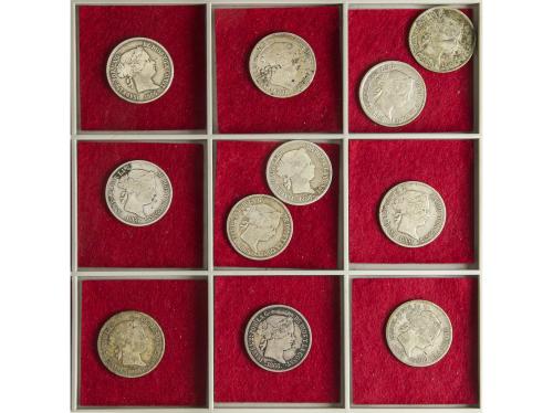 ISABEL II. Lote 25 monedas 1 Real. 1844 a 1864. A EXAMINAR. (Una con perforación). MBC- a MBC+.