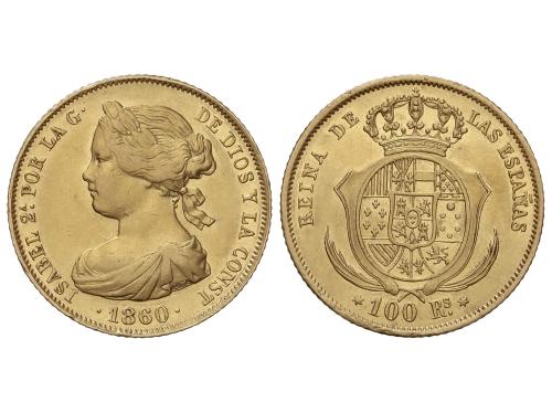 ISABEL II. 100 Reales. 1860. MADRID. 8,35 grs. (Rayitas y golpecitos). AC-787. MBC+/EBC-.