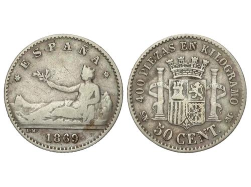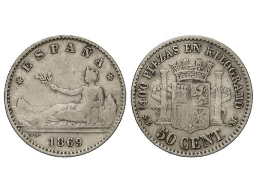 GOB. PROVISIONAL y I REPÚBLICA. 50 Céntimos. 1869 (*6-9). S.N.-M. MBC-.