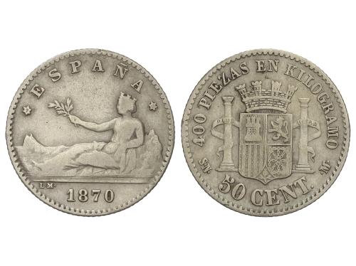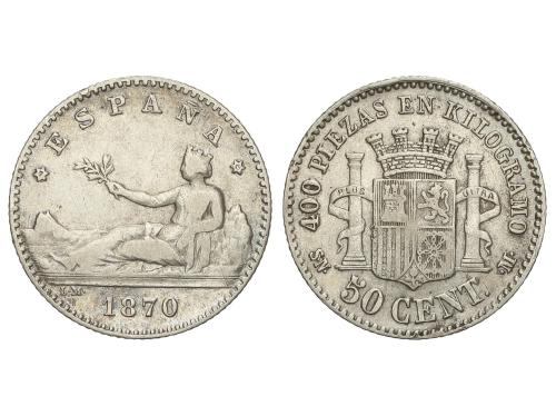 GOB. PROVISIONAL y I REPÚBLICA. 50 Céntimos. 1870 (*7-0). S.N.-M. MBC-.