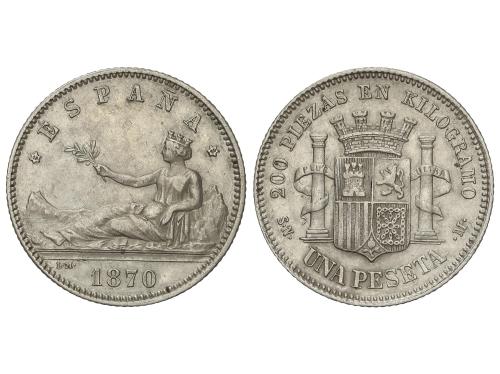GOB. PROVISIONAL y I REPÚBLICA. 1 Peseta. 1870 (*18-70). S.N.-M. MBC+.