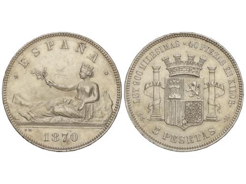 GOB. PROVISIONAL y I REPÚBLICA. 5 Pesetas. 1870 (*18-70). S.N.-M. MBC+.