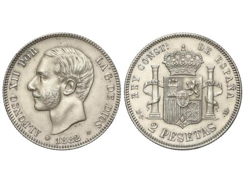 ALFONSO XII. 2 pesetas. 1882/1 (*18-82). M.S.-M. (Limpiada). EBC.
