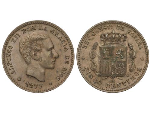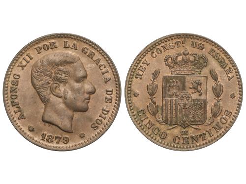 ALFONSO XII. 5 Céntimos. 1879. BARCELONA. O.M. Parte de color original. EBC+/EBC.