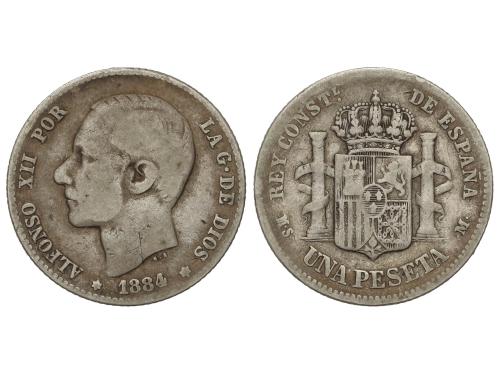ALFONSO XII. 1 Peseta. 1884 (*_-_). M.S.-M. MUY ESCASA. MBC-.