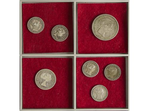 ISABEL II. Lote 7 monedas 1 Real (5), 2 Reales y 40 Céntimos de Escudo. A EXAMINAR. BC+ a MBC+.