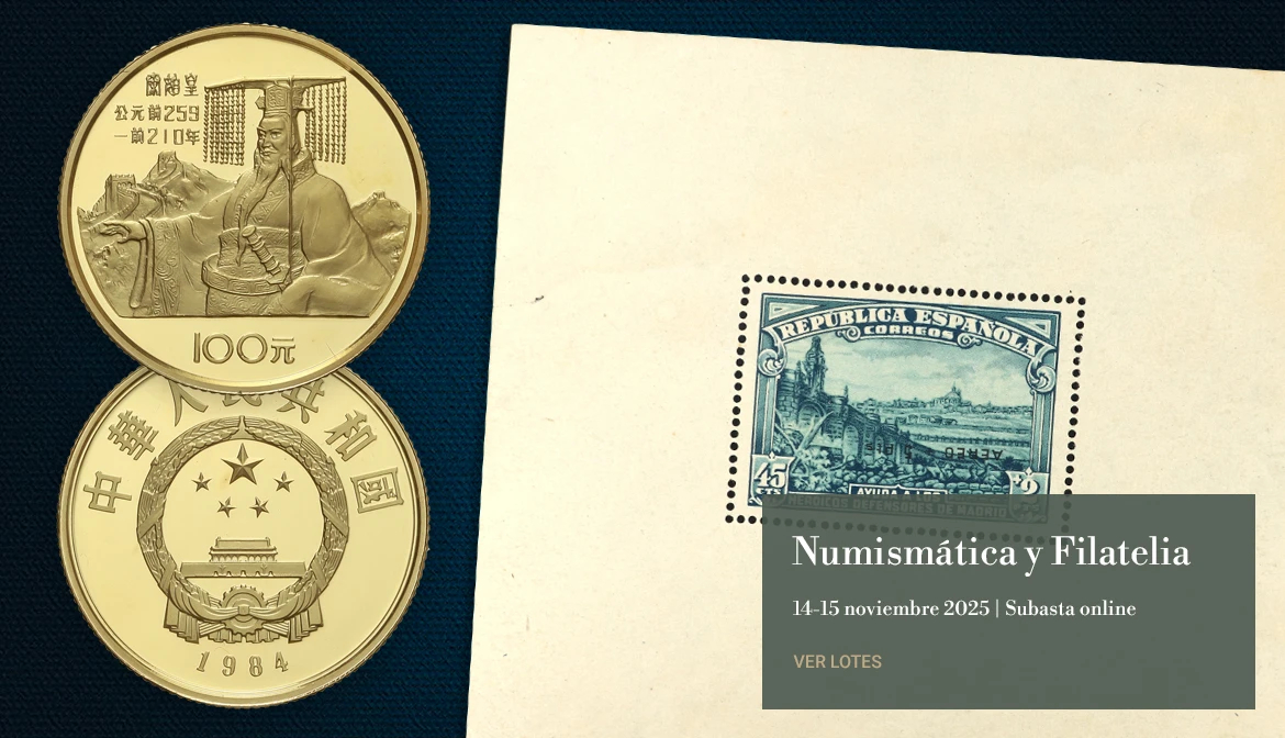Subastas de monedas, billetes, sellos, libros antiguos y coleccionismo en Barcelona. Expertos en numismática, filatelia, libros antiguos y coleccionismo. Valoraciones y tasaciones gratuitas.
