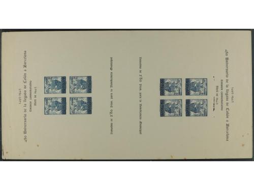 ESPAÑA: AYUNTAMIENTO DE BARCELONA. HB. en azul SIN DENTAR en pareja vertical CAPICUA. Alguna mancha del tiempo. MUY RARA. A EXAMINAR.