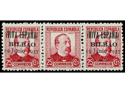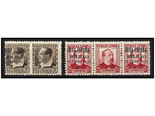 * ESPAÑA E. LOCALES PATRIOTICAS: BILBAO. Ed. 3hph, 7hph. 5 c. y 25 c., parejas, uno sin sobrecarga. RAROS.