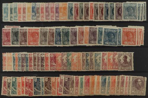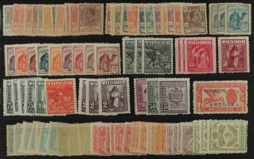 COLONIAS ESPAÑOLAS: RIO DE ORO. CONJUNTO en fichas con sellos sueltos o series de 1/10, 18/33, 41/53, 65/90, 104/142. Incluye Sahara 1/2, Tánger 157/65 y algo de Andorra. Todo numeración ceros al dorso. Alto valor catálogo.
