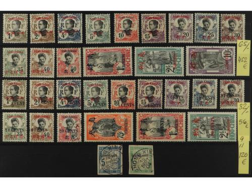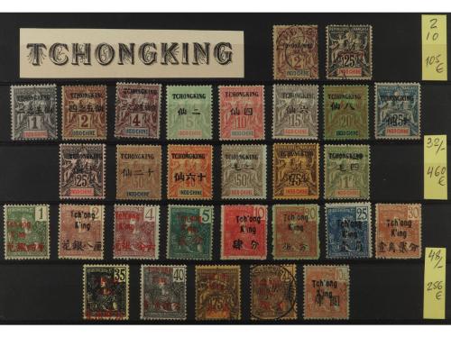 */° COLONIAS FRANCESAS. TCHONGKING. Pequeña colección de 61 sellos diferentes en 2 fichas grandes. OCASION. A EXAMINAR. Yvert 1.449€.