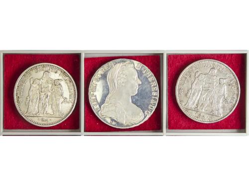 LOTES Y COLECCIONES EXTRANJERO. Lote 3 monedas 10 Francs (2) y reacuñación 1 Thaler. 1965 y reacuñación. AUSTRIA, FRANCIA (2). AR. EBC- a SC-.