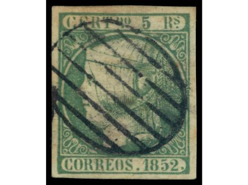 ° ESPAÑA. Ed. 15. 5 reales verde. Sello de lujo por sus amplios márgenes y obliteración nitida. PRECIOSO. RARO.