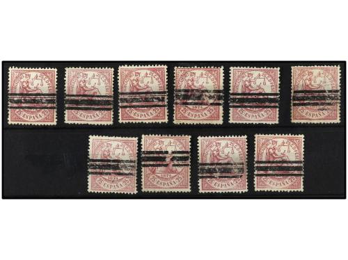 ° ESPAÑA. Ed. 147ec. 25 cts. carmín ERROR DE COLOR. 10 sellos BARRADOS. RAROS. Cat. 410€.