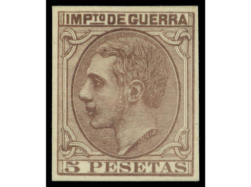 * ESPAÑA. Ed. NE10P. 5 pts. PRUEBA SOBRE CARTULINA SIN DENTAR en color castaño claro. No catalogada en Galvez. PRECIOSA. RARA.