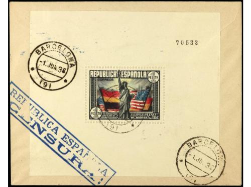 ESPAÑA. Ed. 764. HB. en carta con Mat. PRIMER DIA dirigida a Arthur Barger. MUY RARA.