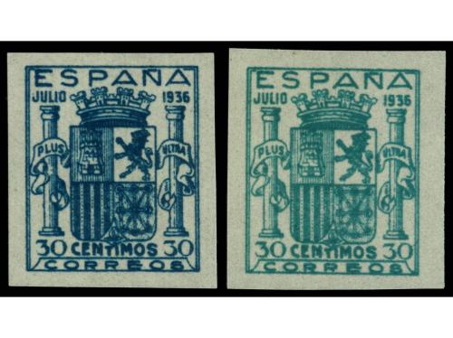 * ESPAÑA. Ed. NE56/7. 30 cts. azul y 30 cts. verde SIN DENTAR. NO EXPENDIDOS. PRECIOSOS. RAROS. Cat. 630€.
