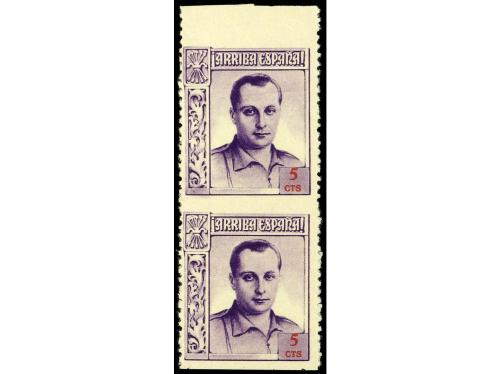 ** ESPAÑA: BENEFICENCIA. Ed. NE14sh. 5 cts. en pareja vertical SIN DENTADO HORIZONTAL. Borde superior de hoja. PRECIOSA. RARA.