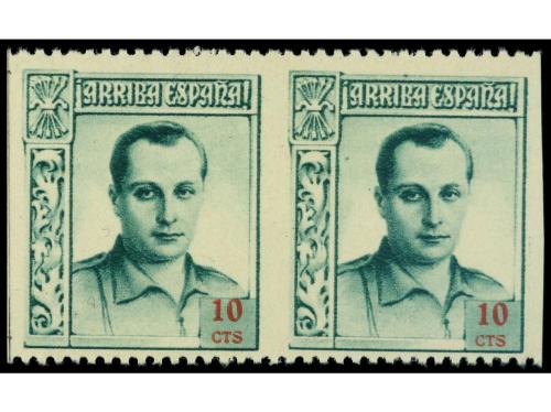 ** ESPAÑA: BENEFICENCIA. Ed. NE15sv. 10 cts.en pareja horizontal SIN DENTADO VERTICAL. PRECIOSA. RARA.
