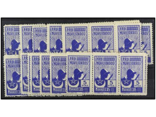 ESPAÑA GUERRA CIVIL. ZONA NACIONAL. ÁFRICA (Marruecos). 5 pts. azul. 58 sellos sueltos o en tiras. Alguno defecto. EXAMINAR. Allepuz (*) 14.