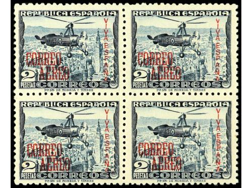 ** ESPAÑA E. LOCALES PATRIOTICAS. Ed. 61(4). SAN SEBASTIAN. Bloque de 4. Todos con doble Marquilla RUIZ DE ARCAUTE. PRECIOSO. RARO. Cat. 116,-.