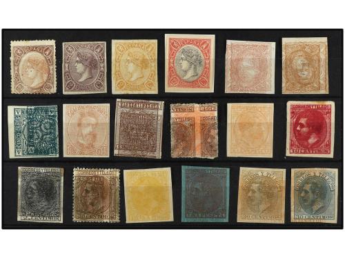 LOTES y COLECCIONES. ESPAÑA. Ficha con Ensayos de color y Maculaturas. INTERESANTE.