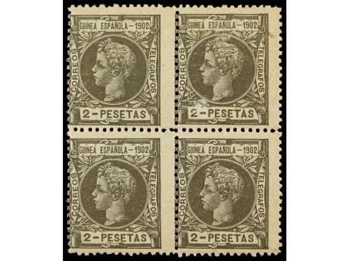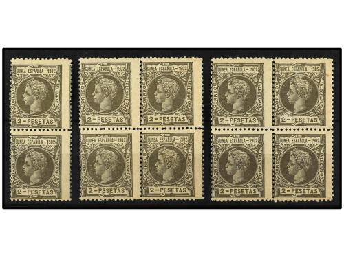 ** COLONIAS ESPAÑOLAS: GUINEA. Ed. 7 (10). 2 pts. oliva. 10 sellos en parejas o bloques. Algún sello punto de óxido. EXAMINAR. Cat. 4.700€.