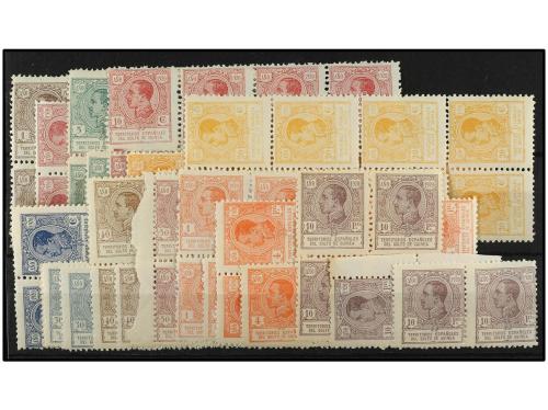 ** COLONIAS ESPAÑOLAS: GUINEA. Ed. 141/53 (8). 8 SERIES COMPLETAS. 13 valores en bloques o tiras. Mayoría buena calidad. EXAMINAR. Cat. 1.200€.