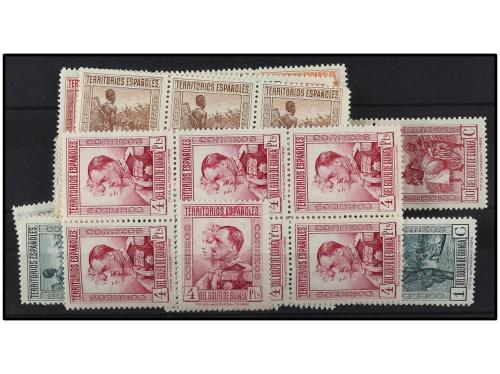 ** COLONIAS ESPAÑOLAS: GUINEA. Ed. 214 (7). 4 pts. lila rosa. 7 ejemplares. Se incluyen sueltos de la serie en distintas calidades. Cat. +950€.