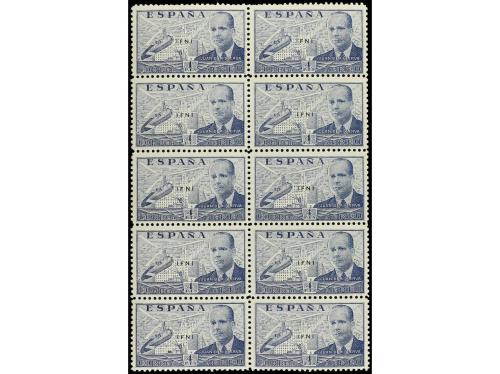 ** COLONIAS ESPAÑOLAS: IFNI. Ed. 14A/G (10). 10 SERIES COMPLETAS. 7 valores en bloque. LUJO. Cat. 1.240€.