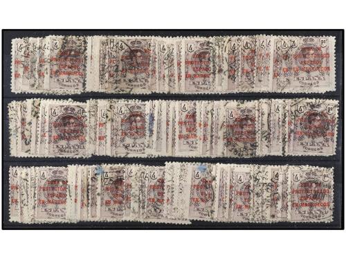 ° COLONIAS ESPAÑOLAS: MARRUECOS. Ed. 79 (100). 4 pts. violeta. 100 sellos. Centrados diversos. EXAMINAR. Cat. 2.200€.