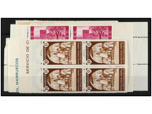 ** COLONIAS ESPAÑOLAS: MARRUECOS. Ed. 148/60 (4). SERIE COMPLETA. 13 valores en bloques de cuatro. Cat. 1.940€.