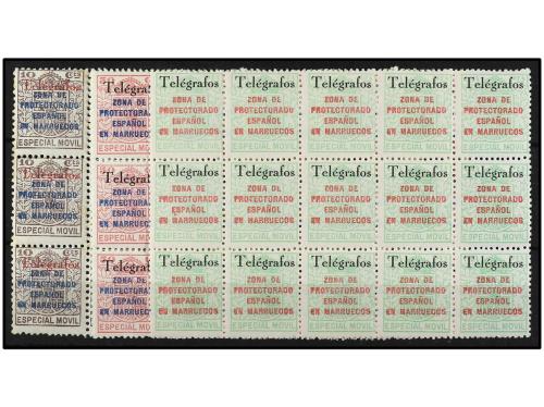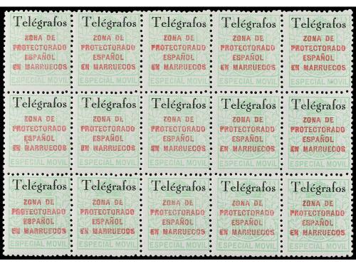 ** COLONIAS ESPAÑOLAS: MARRUECOS. Ed. 31A/C (15). TELÉGRAFOS. 15 SERIES COMPLETAS. 3 valores en bloque. Algún valor goma climatizada habitual. EXAMINAR. Cat. 1.605€.