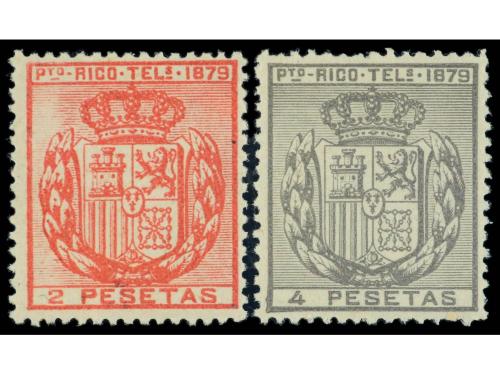 ** COLONIAS ESPAÑOLAS: PUERTO RICO. Ed. T.19/20. TELEGRAFOS. SERIE COMPLETA. Bonitos centrados. Rara sin fijasellos.