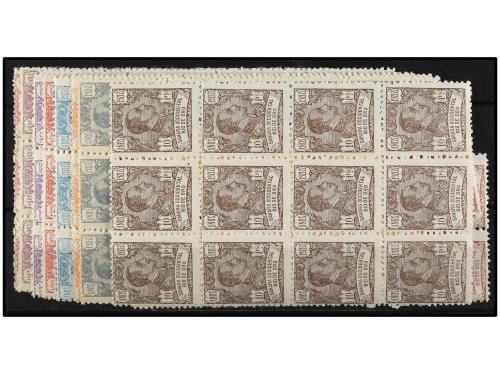 ** COLONIAS ESPAÑOLAS: RIO DE ORO. Ed. 130/42 (12). 12 SERIES COMPLETAS. 13 valores en bloques o triras. Algún valor leve defecto. Del 1 cto. sólo hay 10 sellos. EXAMINAR. Cat. 1.436€.