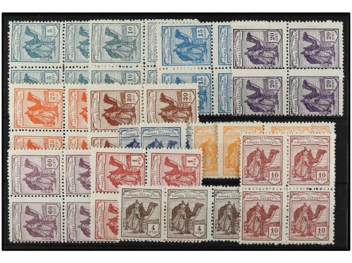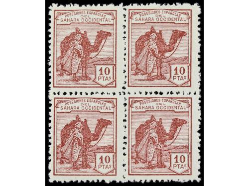 ** COLONIAS ESPAÑOLAS: SAHARA. Ed. 1/12N (4). SERIE COMPLETA, 12 valores sueltos o en bloques de cuatro. NUMERACIÓN CEROS. Algún valor leve doblez. EXAMINAR. Cat. +2.130€.